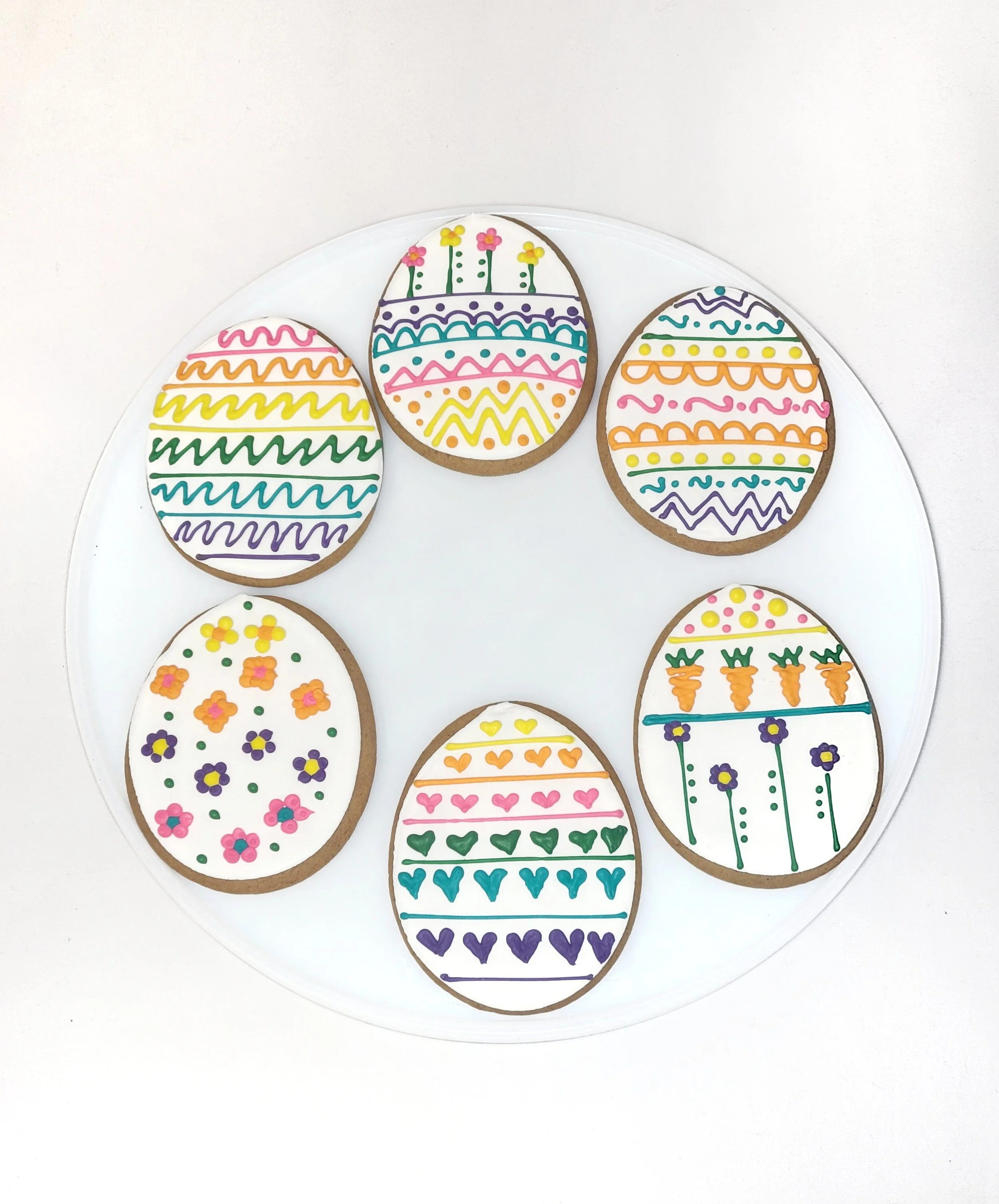 With your order you get 1/2 dozen beautifully flooded and decorated easter egg cookies!